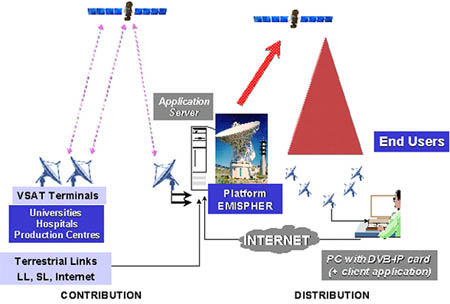 The project is putting together the cutting edge European technology developed in the frame of previous EU funded projects, to provide an integrated Internet and Satellite platform, dedicated to health applications, and covering the whole Euro-Mediterranean area. Mature satellite technologies as shown in the very successful EU project GALENOS, can be cost-effective if combined with appropriate internet application services, to guarantee the required bandwidth when and were it is required, and therefore achieve the required quality of service (response time, quality of video transmissions and large medical records, synchronisation of databases etc.). Thanks to the advances performed in previous projects (ET-ASSIST, HC1016 - GALENOS, # 45592- TEN-TELEMED, # 45653) and to additional industrial investments, such a platform will be available right from the beginning of the project.